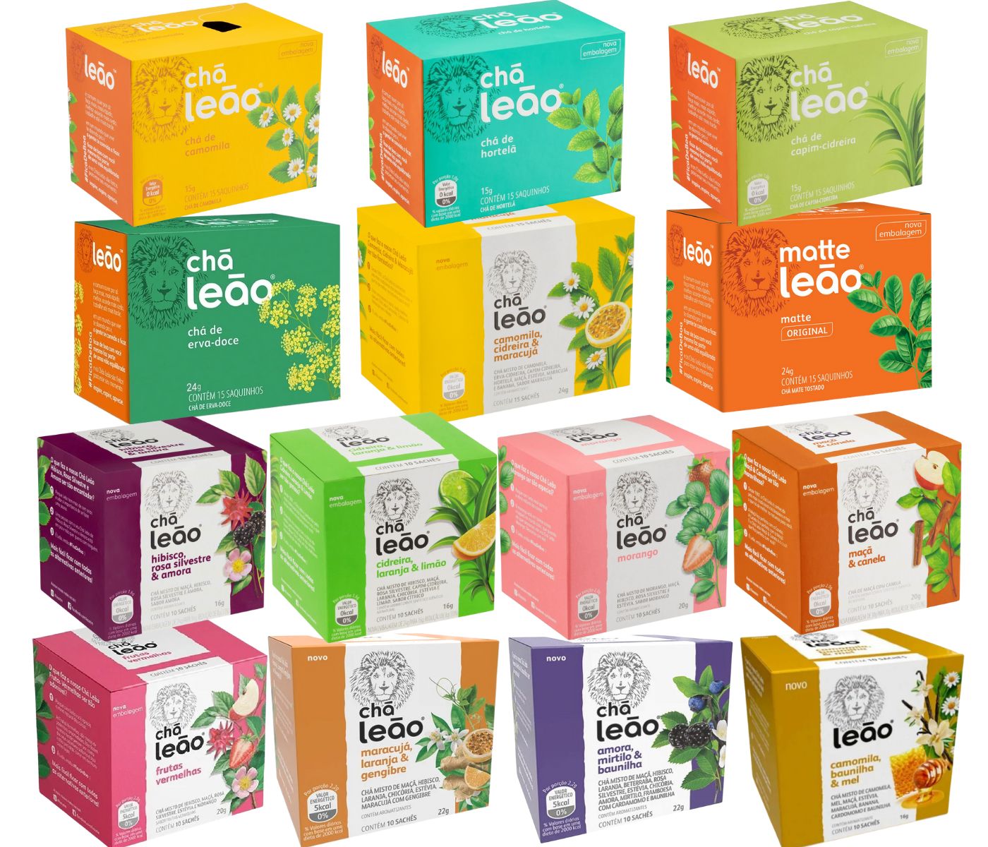 01 caixa de 15 sachês CHÁ LEÃO CAMOMILA, CIDREIRA E MARACUJA